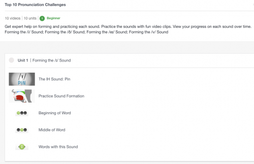 IntelliSpeech℠ has analyzed our users English pronunciation over hundreds of millions of recorded utterances and identified the most common problematic sounds of speakers for each native language region. Based on this analysis and speech data, we have designed pronunciation courses — Top 10 Challenges — where learners can focus on the most challenging Sounds for speakers from their native language, using authentic videos.