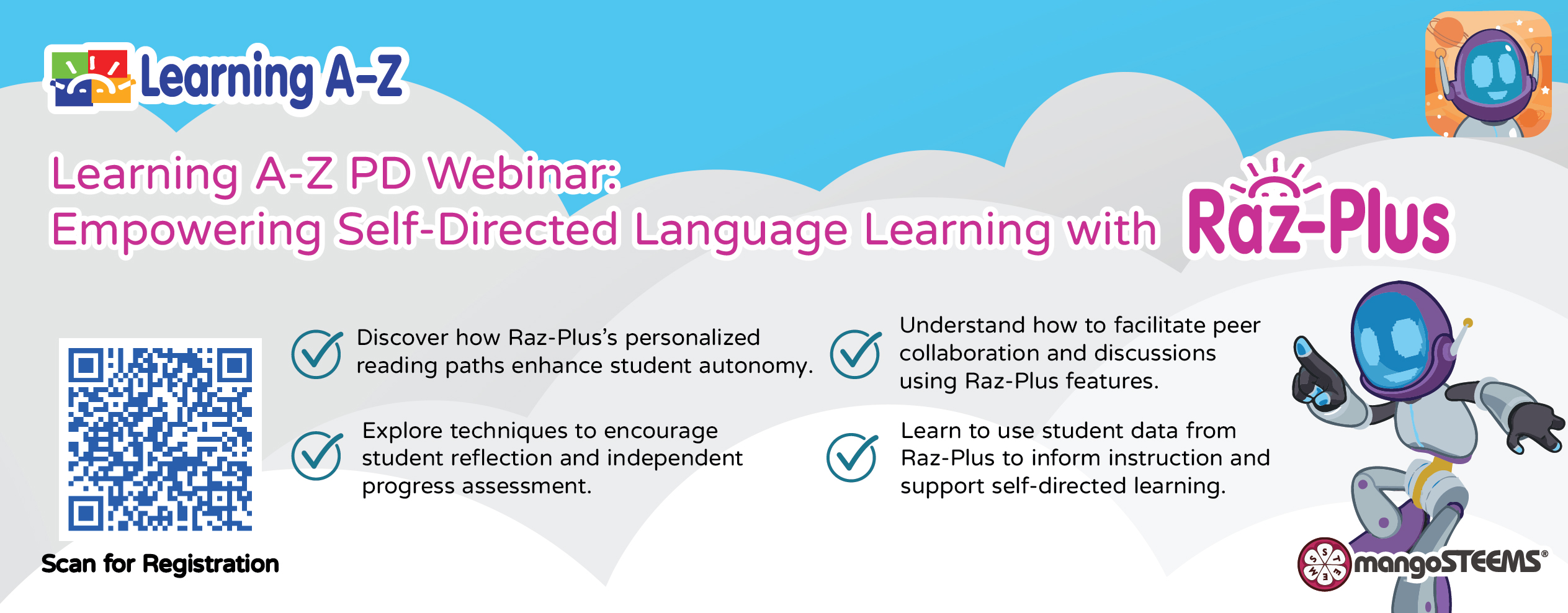 To reserve your spot, please register by 21 May 2025 at HERE. Attendees will receive a one-month free trial of Raz-Plus and a PDF certificate of completion for this professional development webinar from Learning A-Z.
